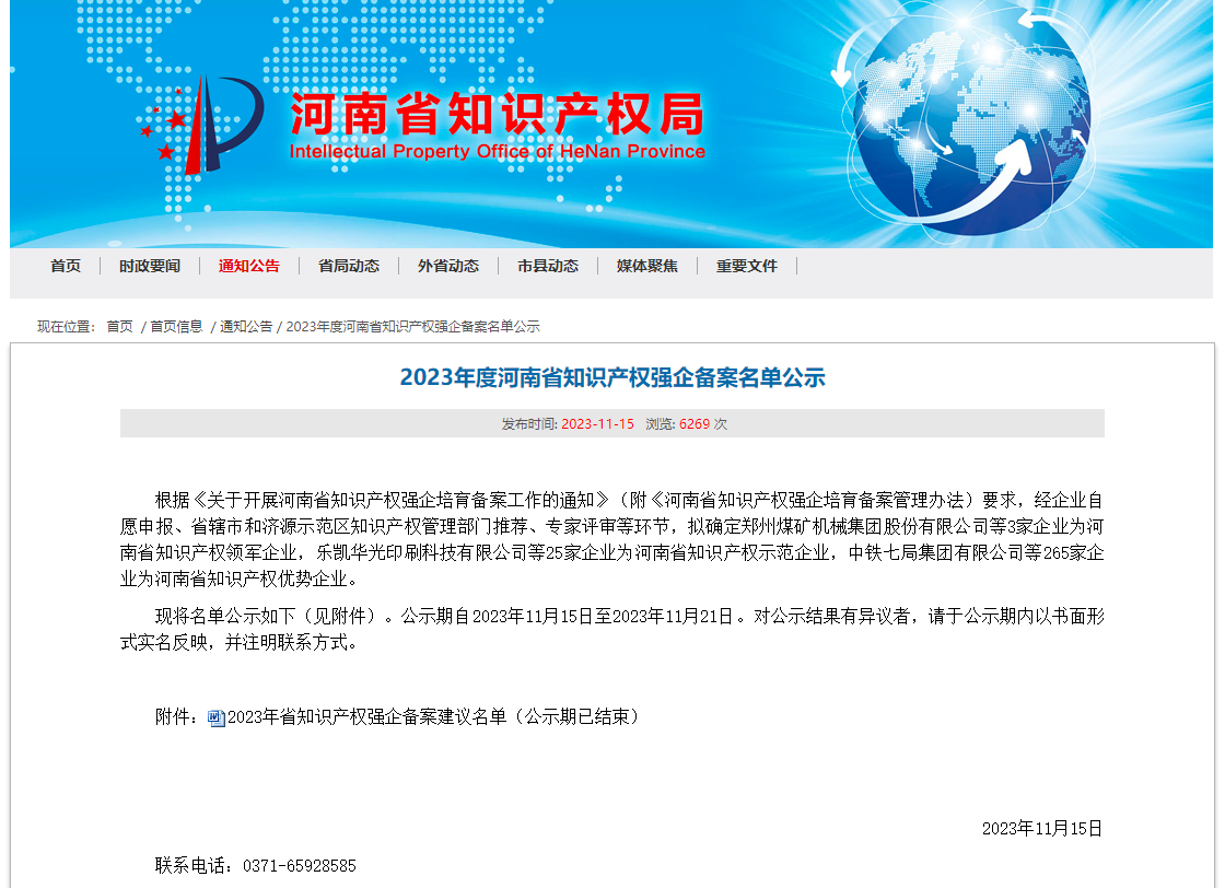 11月15日,河南省知識(shí)產(chǎn)權(quán)局公布了《2023年度河南省知識(shí)產(chǎn)權(quán)強(qiáng)企備案名單》,鄭州源創(chuàng)基因科技有限公司榮獲“河南省知識(shí)產(chǎn)權(quán)優(yōu)勢(shì)企業(yè)”稱號(hào)。
