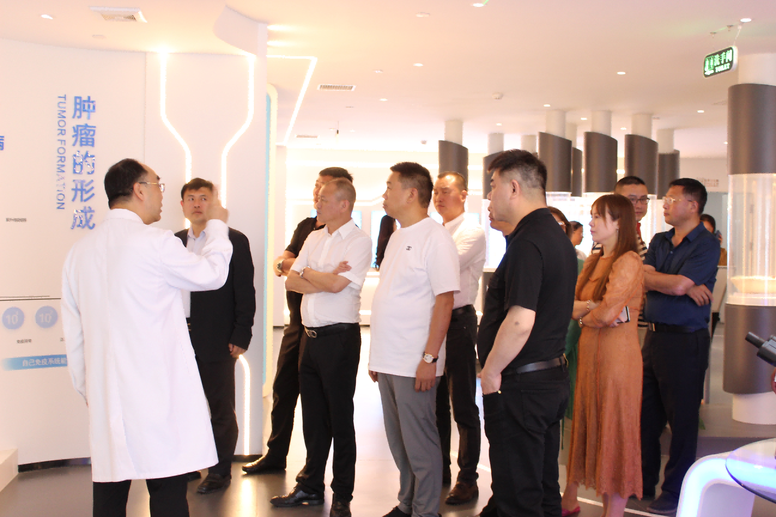 隨后,考察團(tuán)一行在源創(chuàng)基因副總經(jīng)理于衛(wèi)東的陪同下參觀了源創(chuàng)基因生命科學(xué)館,深入了解了人體細(xì)胞起源、細(xì)胞分類及應(yīng)用、干細(xì)胞研發(fā)成果及相關(guān)技術(shù)產(chǎn)品。在講解腫瘤免疫版塊內(nèi)容時(shí),副總經(jīng)理于衛(wèi)東對(duì)考察團(tuán)成員提出的疑問(wèn)進(jìn)行了細(xì)致分析并解答。