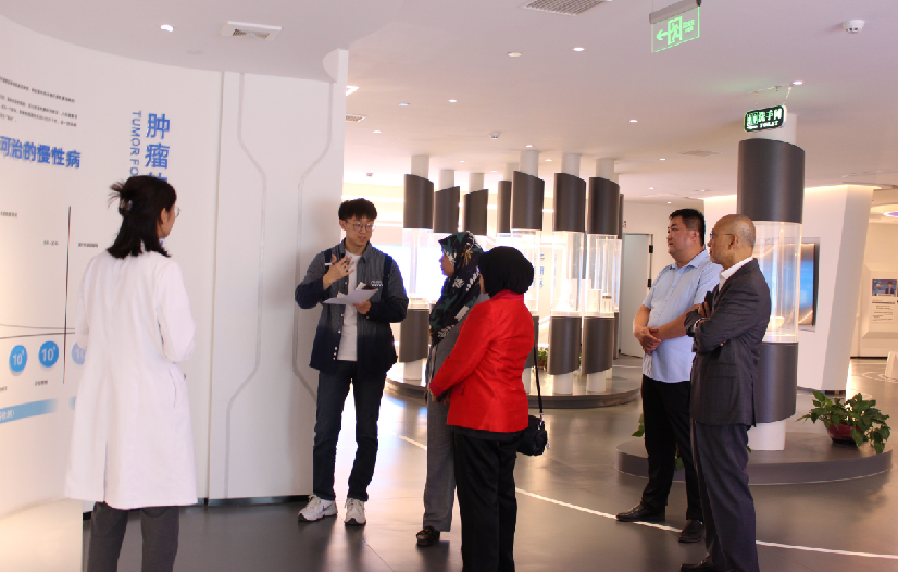 儀式開始前,馬來西亞管理與科學大學校長Dr.Mohd Shukri Ab. Yajid一行在源創基因講解人員的引導下,參觀了源創生命科學館,深入了解了源創基因目前的主要研究內容、科研技術、細胞相關業務產品,在細胞治療、細胞整合應用、健康管理等領域的創新成果,給馬來西亞客人留下了深刻印象,對源創基因取得的成就給予高度贊賞。