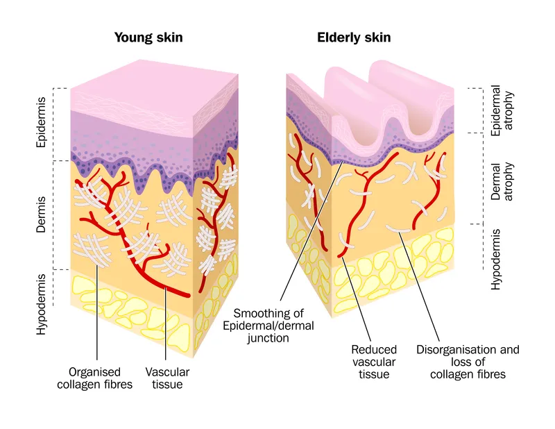 皮膚衰老的原因,除了內源性老化即機體自身細胞的衰老,更主要的因素是外源性老化,這其中又以陽光中紫外線照射影響最大,稱為“光老化”。