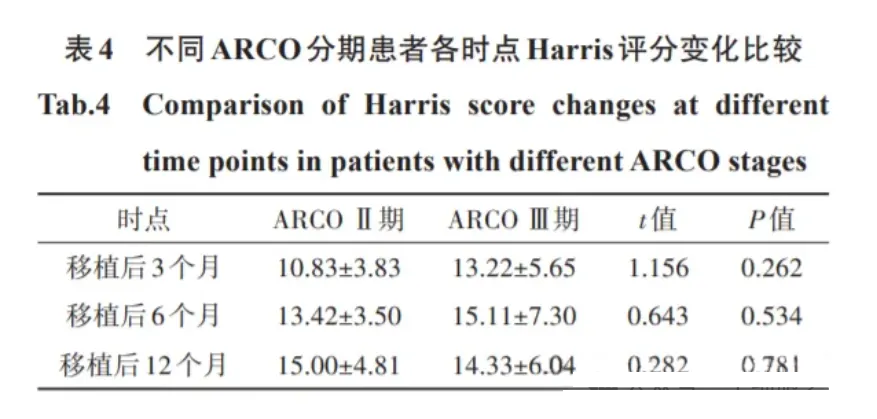 VAS評分評估移植前、移植后3、6、12個月的疼痛變化,Harris評分法評估移植前、移植后3、6、12個月的髖關節功能,測算移植前、移植后12月MRI T1像上最大層面壞死面積評估影像學變化。采用SPSS 26.0對數據進行統計分析。