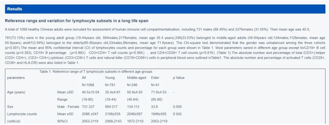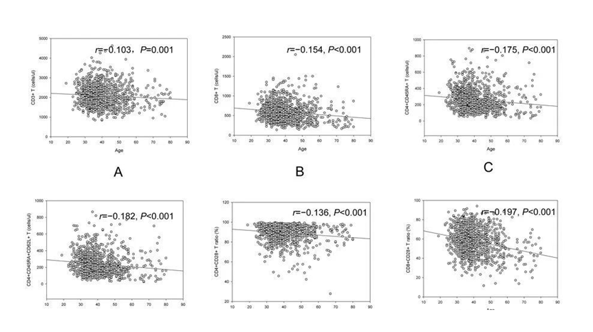 北京協(xié)和醫(yī)院感染內科主任李太生等在Aging雜志發(fā)表文章“Aging of immune system: Immune signature from peripheral blood lymphocyte subsets in 1068 healthy adults”,分析了1068名健康人外周血淋巴細胞及其亞群隨著年齡變化因素數(shù)量和比例發(fā)生的改變。