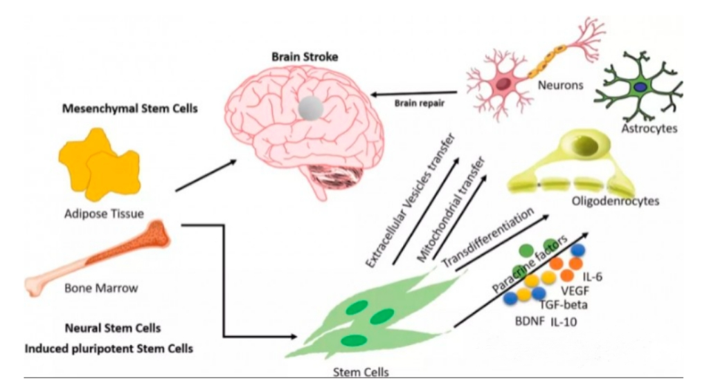 旁分泌效應:干細胞通過分泌神經營養(yǎng)因子、抗炎因子等,促進神經保護和血管再生。