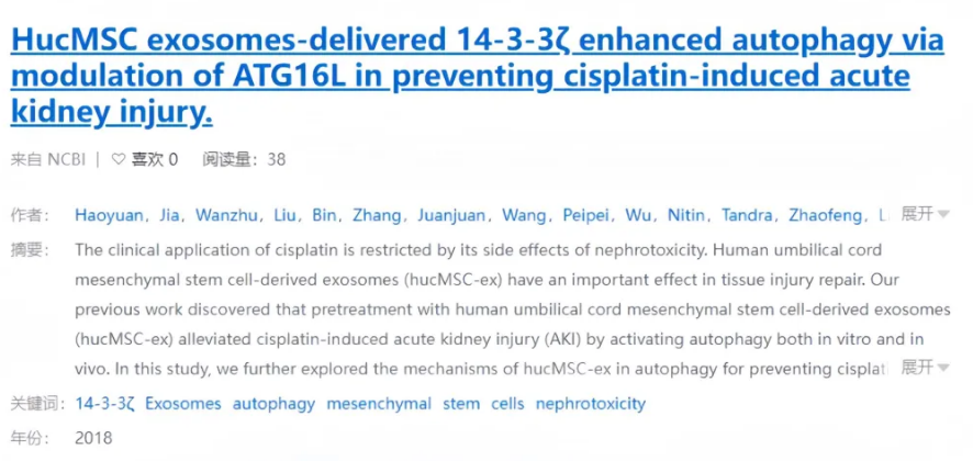 研究發(fā)現(xiàn),hucMSC-ex中的14-3-3ζ蛋白與ATG16L互動促進自噬過程的激活,此發(fā)現(xiàn)不僅揭示了MSC外泌體通過14-3-3ζ激活自噬的獨特機制,也為減輕順鉑引起的腎毒性提供了新的思路。