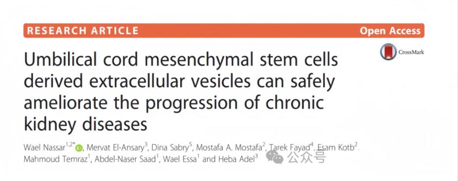 2016年,一項來自埃及開羅大學的Ⅱ/Ⅲ期臨床試驗對間充質干細胞外泌體治療慢性腎臟病患者的案例進行了研究。