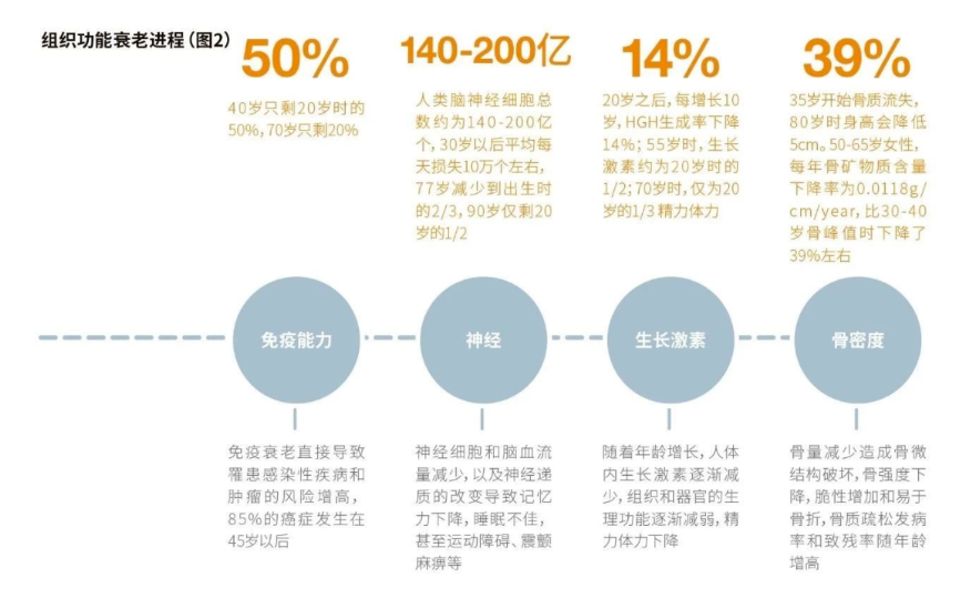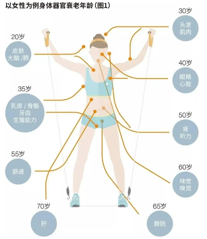 衰老,指身體各個系統、各種器官和組織在生長發育成熟后,隨年齡增長而逐步出現的各種生理的、代謝的和功能的改變。人體的衰老是一個從20歲開始漸進的過程,不同器官和組織功能的老化進程并不同步。