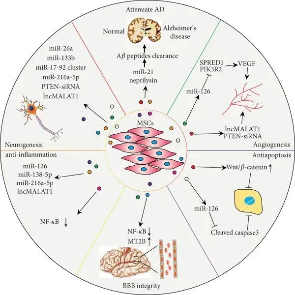 阿爾茨海默癥:外泌體通過調節β-淀粉樣蛋白(Aβ)的代謝、tau蛋白的磷酸化以及炎癥反應來發揮作用。