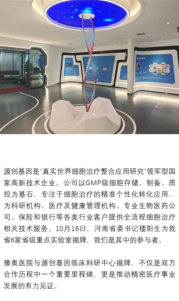近日,豫奧醫院公眾號專訪了源創基因董事長趙輝博士和他的“生物科學王國”,同時勾畫了源創基因與豫奧醫院深度合作的美好畫卷。