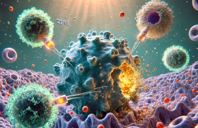 抗體療法:利用抗體藥物特異性地結合腫瘤細胞表面抗原,激活NK細胞攻擊腫瘤細胞。