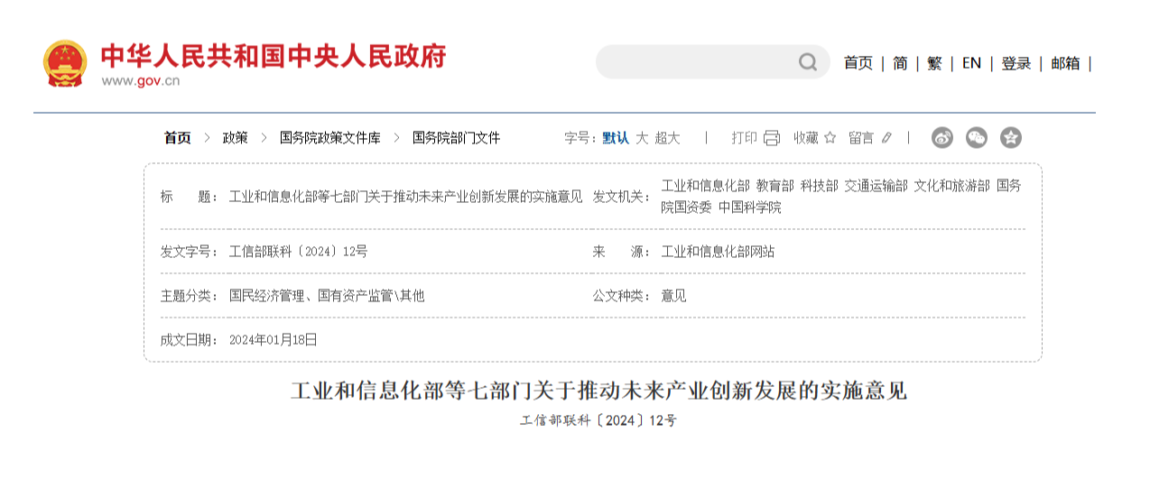l 2024.01.18 工業和信息化部等七部門關于推動未來產業創新發展的實施意見