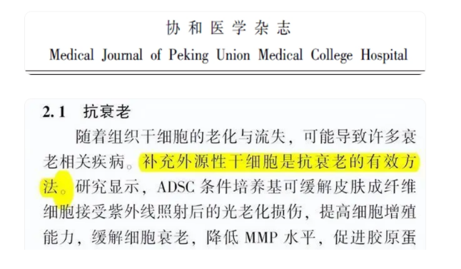 干細胞療法不僅能從外部改善皮膚老化的問題,更重要的是從內部調整人體系統,實現真正的“由內而外的年輕”。在《協和醫學雜志》發布的研究中提及,補充外源性干細胞是抗衰老的有效手段之一。
