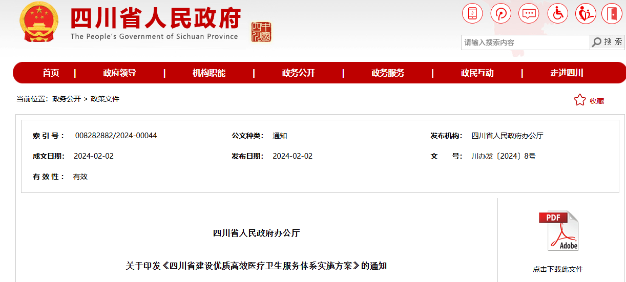 l 《四川省建設優質高效醫療衛生服務體系實施方案》