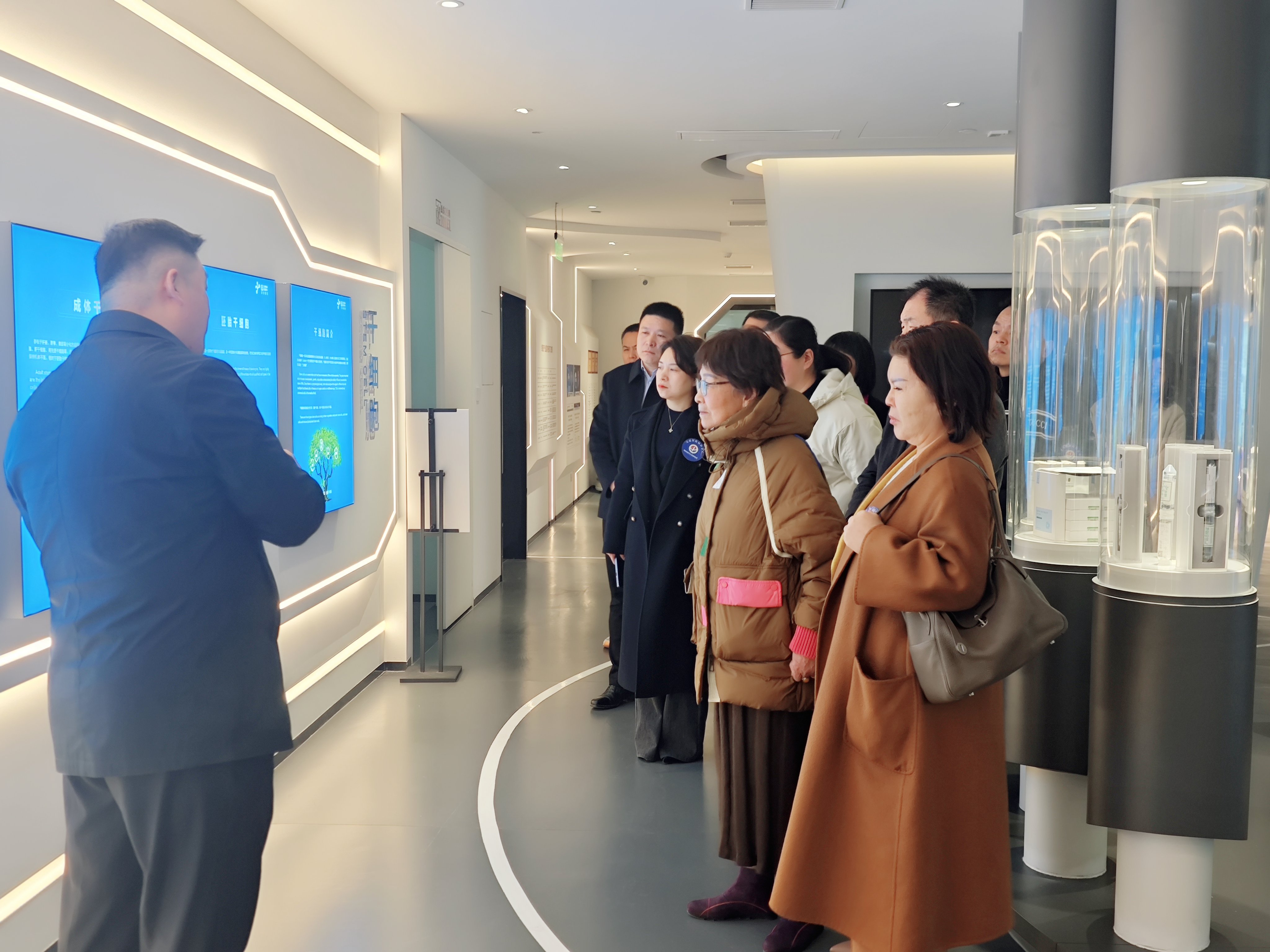 緊接著,參觀團一行來到源創生命科學館。這里集中展示了公司在免疫細胞及干細胞領域的前沿轉化應用研究成果,尤其是在腫瘤方向的深入探索與突破,吸引了眾人的目光。參觀團對公司在這些關鍵領域取得的成績表示高度贊賞。