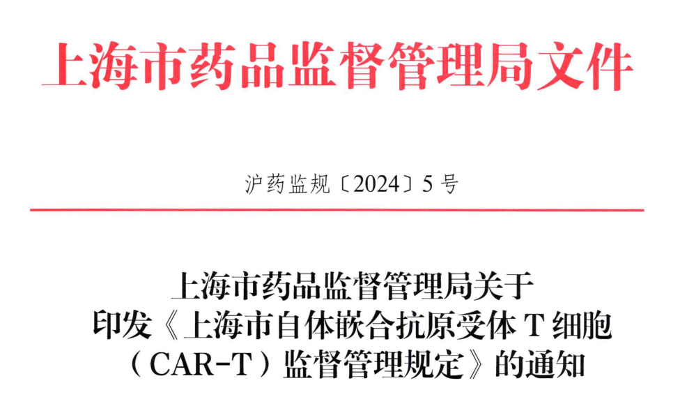 l 《上海市自體嵌合抗原受體T細胞(CAR-T)監督管理規定》