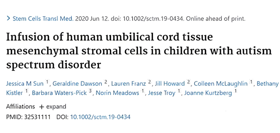 發表在《干細胞轉化醫學》雜志上的一項研究顯示,對于4-9歲自閉癥譜系障礙患兒,間充質干細胞具有很好的神經炎癥調節能力,通過臨床I期實驗證實了50%的患兒接受靜脈注入人臍帶組織間充質干細胞后,自閉癥譜系障礙核心癥狀得到了很好的改善,患者的社交、語言和日常技能有了顯著改善,重復行為和多動癥明顯減少。