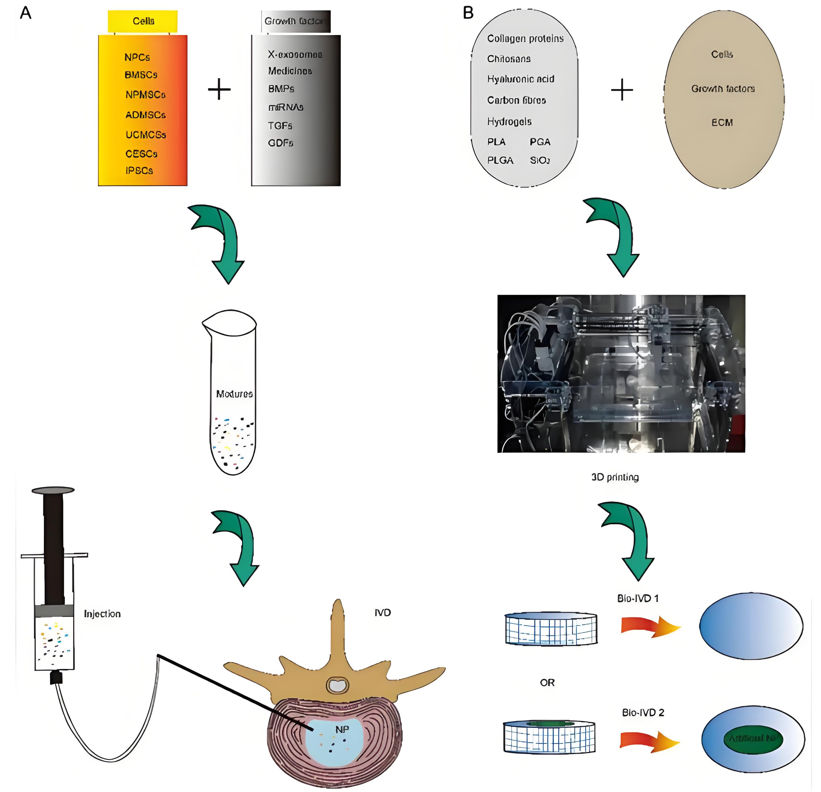 [3] Zhang X, Hu Y, Hao D, Li T, Jia Y, Hu W, Xu Z. New strategies for the treatment of intervertebral disc degeneration: cell, exosome, gene, and tissue engineering. Am J Transl Res. 2022 Nov 15;14(11):8031-8048. PMID: 36505274; PMCID: PMC9730054.