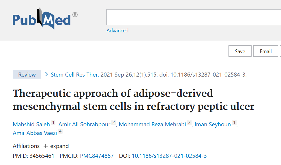 【參考文獻】Therapeutic approach of adipose-derived mesenchymal stem cells in refractory peptic ulcer - PubMed