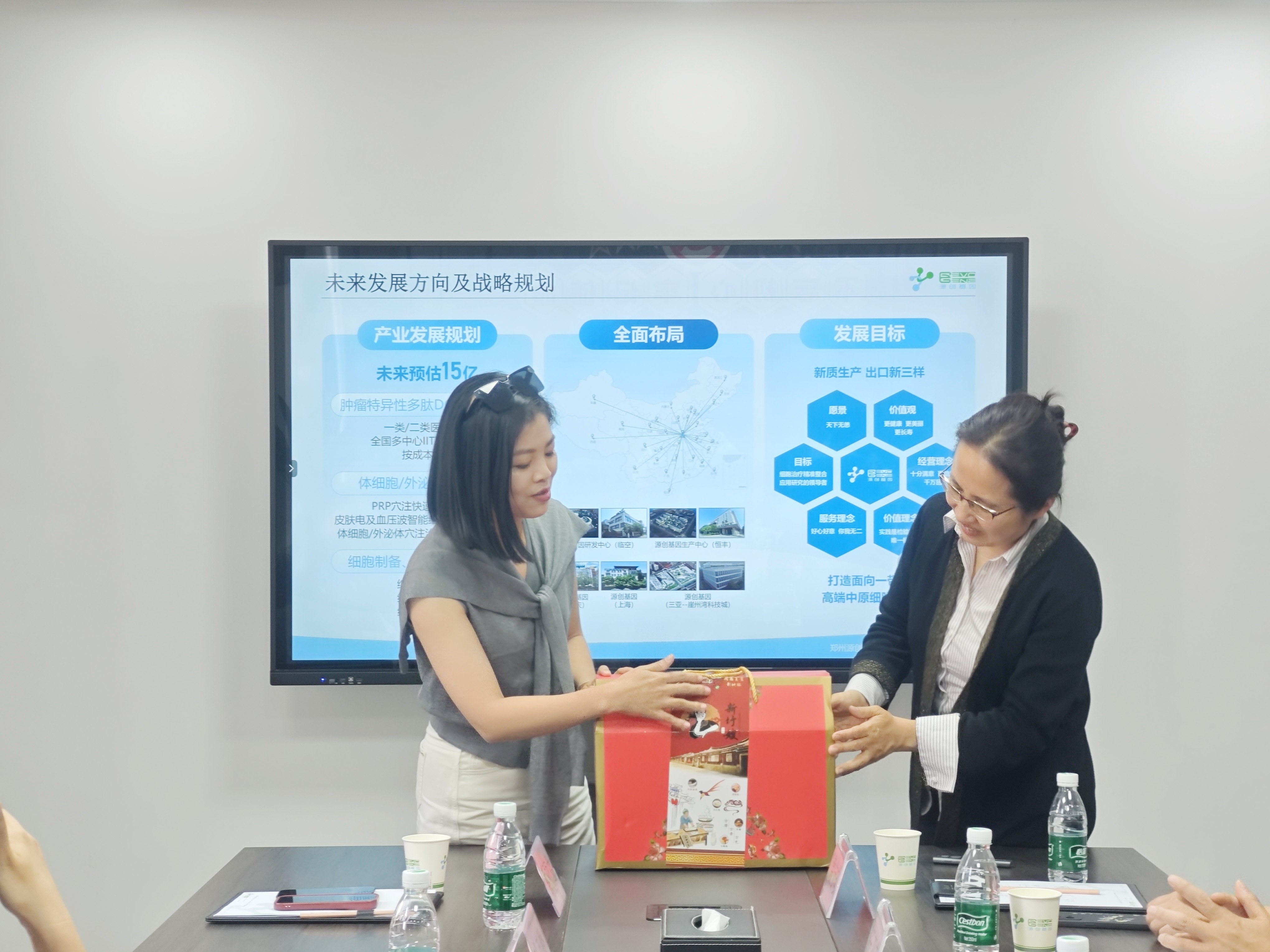 交流環節中,源創基因高級副總裁蔣玉青女士與林麗芬局長就細胞技術市場需求、區域醫療資源協同等議題展開討論,雙方在企業聯動、臨床研究合作等領域達成初步共識。