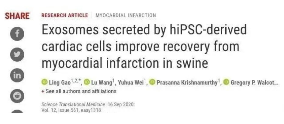 由阿拉巴馬大學伯明翰分校、同濟大學和巴黎大學的科學家聯合開展,并在《科學轉化醫學》雜志上發表。研究標題為“Exosomes secreted by hiPSC-derived cardiac cells improve recovery from myocardial infarction in swine”,該研究可能為心肌損傷提供了一種全新的外泌體治療策略。