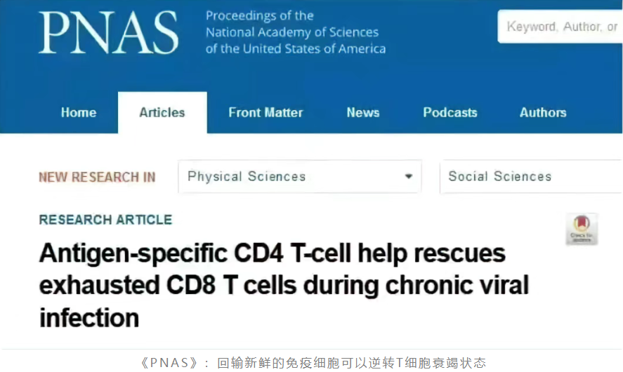 發表于《PNAS》(美國國家科學院院報)上的研究報告指出:通過補充新鮮的免疫細胞可以逆轉T細胞衰竭狀態,為免疫相關疾病的預防和干預開創了新天地。