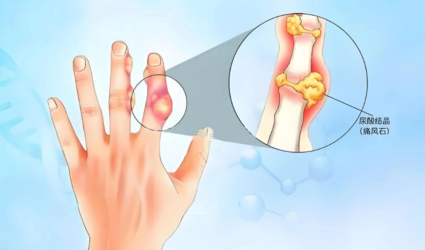 l 沉積在軟骨:引發痛風性關節炎。50%以上的痛風性關節炎發生在大腳趾,反復發作后,也可能出現在足部、踝部、膝關節等其他關節。