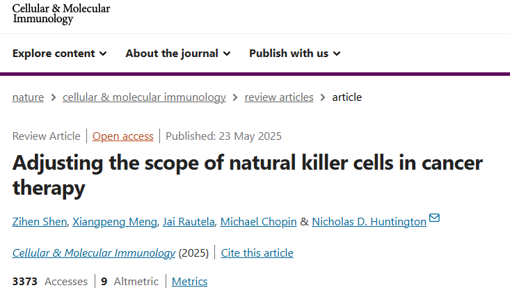 日前,澳大利亞一科研團隊在期刊Cellular&Molecular Immunology上發表了一篇題為“Adjusting the scope of natural killer cells in cancer therapy”的研究報告,深入探討了自然殺傷細胞(NK細胞)在應對癌癥過程中的作用及相關機制。