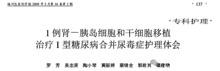 2009年《福州總醫院學報》曾報道過1例29歲男性患者,該患者于6歲時確診為1型糖尿病,2001年出現腎功能異常,被診斷為“糖尿病腎病、尿毒癥”,隨后開始了每周約3次的血液透析治療。