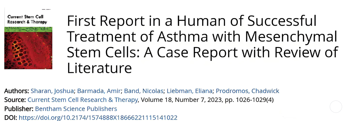 2023年,發(fā)表于國(guó)際期刊《Current Stem Cell Research & Therapy(干細(xì)胞研究與治療)》上的全球首例人類臍帶間充質(zhì)干細(xì)胞治療哮喘的臨床病例報(bào)告顯示,患者的長(zhǎng)期哮喘現(xiàn)象在應(yīng)用間充質(zhì)干細(xì)胞療法后,獲得了顯著且安全的持續(xù)改善。