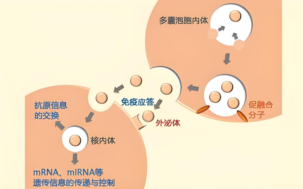 內容物遞送: 外泌體通過內吞作用被靶細胞攝取,或與靶細胞質膜直接融合,將其攜帶的功能性分子(如蛋白質、核酸、脂質等)釋放到靶細胞內,從而調控細胞功能及生物學行為。