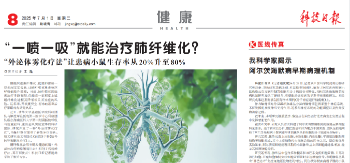 7月1日科技日報報道:清華大學基礎醫學院科研團隊與解放軍總醫院第一醫學中心科研團隊聯合海南醫科大學第一附屬醫院呼吸與危重癥科、重慶金鳳實驗室等的科研團隊,研究并開發了一種“外泌體霧化療法”,為肺纖維化提供了新型治療策略。相關研究論文刊登在《自然》子刊《信號轉導和靶向治療(Signal Transduction and Targeted Therapy)》上。臨床試驗證實:霧化吸入人臍帶間充質干細胞來源外泌體治療安全性良好,未出現嚴重不良事件。肺炎引起的肺纖維化患者在治療后影像學檢查顯示病灶顯著好轉,纖維化進程得到逆轉。