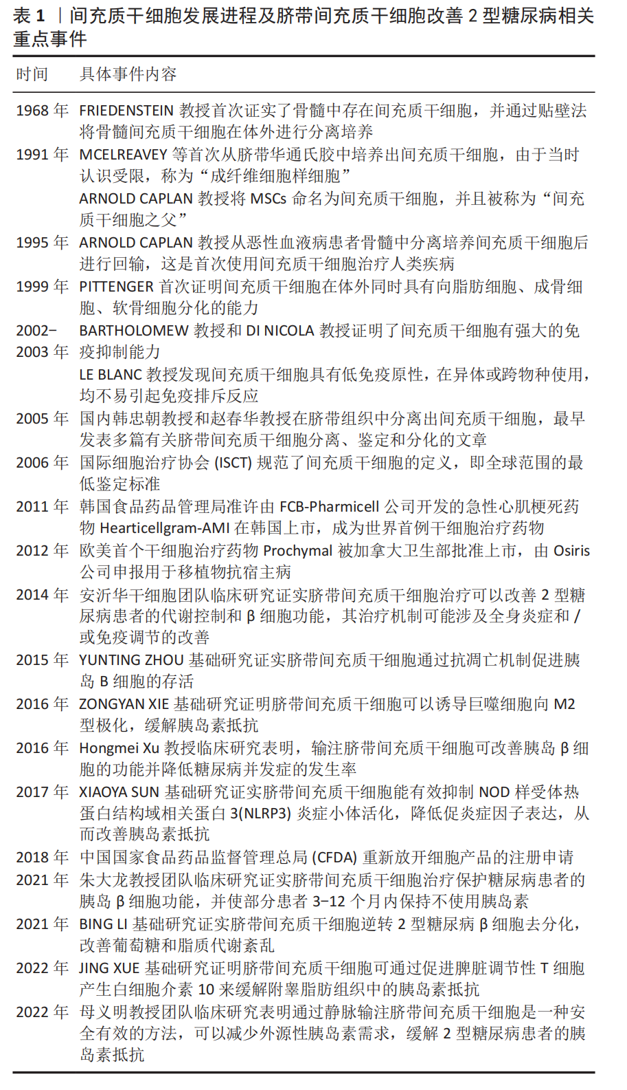近年多項臨床試驗驗證了UC-MSCs的安全性和有效性,在上述文獻中研究團隊也整理了間充質干細胞發展進程及臍帶間充質干細胞改善2型糖尿病相關重點事件。