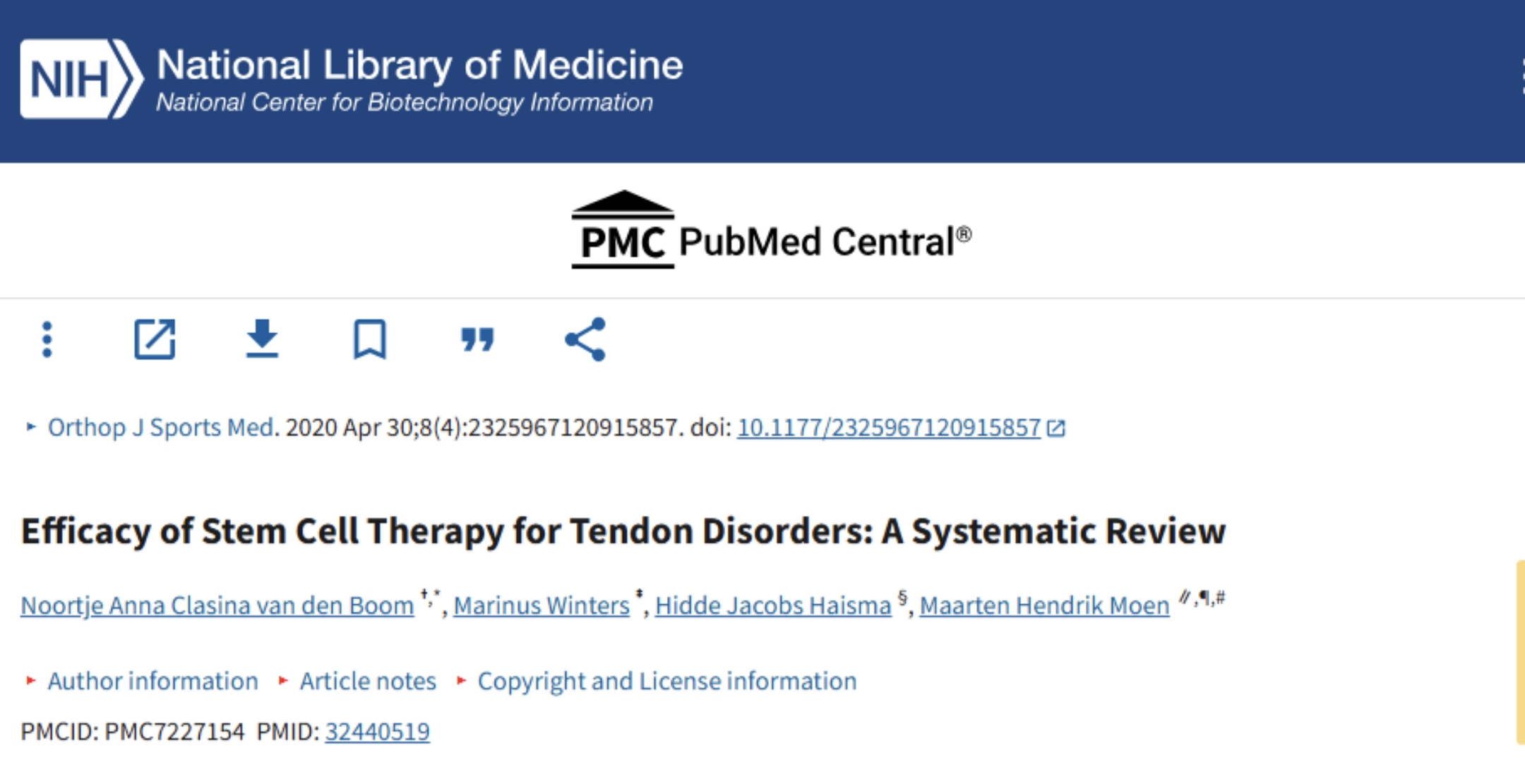 《Efficacy of Stem Cell Therapy for Tendon Disorders:A Systematic Review》系統(tǒng)性檢索了多個數(shù)據(jù)庫,納入了8項試驗,共289名患者,在跟腱疾病方面,1項試驗發(fā)現(xiàn),與富血小板血漿(PRP)相比,異體來源的干細(xì)胞可使患者恢復(fù)得更快。另一項研究發(fā)現(xiàn),在手術(shù)治療中聯(lián)合使用骨髓源性干細(xì)胞治療后未出現(xiàn)再斷裂的情況。此外,還有4項試驗研究了骨髓源性干細(xì)胞治療肩袖撕裂的療效,其中對照試驗報告了更優(yōu)越的患者報告結(jié)果和更好的肌腱愈合情況。