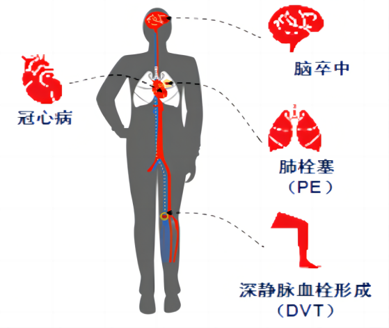血栓發(fā)生在動(dòng)脈,可能導(dǎo)致相應(yīng)組織或器官缺血缺氧,引發(fā)心肌梗死或腦梗死;發(fā)生在靜脈,則會(huì)影響血液回流,如下肢深靜脈血栓,甚至引發(fā)肺栓塞。血栓是心肌梗死、腦卒中及靜脈血栓栓塞癥的共同病理基礎(chǔ),具有高發(fā)病率、高致殘率、高復(fù)發(fā)率及高死亡率的特點(diǎn),嚴(yán)重威脅人類健康。