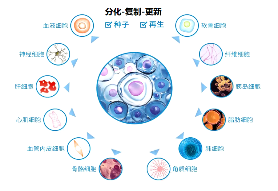 干細胞是一類具有自我更新和多向分化潛能的細胞。當組織受損或發生疾病時,干細胞能夠響應體內信號,遷移至損傷部位,在局部微環境的誘導下分化為所需的功能細胞,替代衰老或受損細胞,從而實現組織修復與再生。