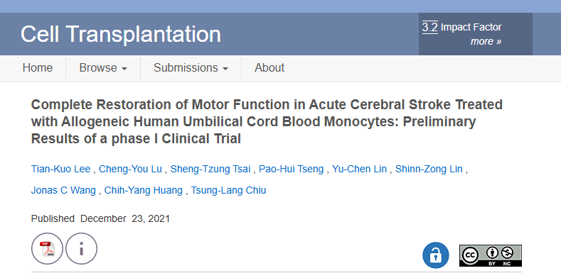 案例一(2021年):中國臺灣花蓮慈濟大學醫(yī)學院報道,一名缺血性腦卒中偏癱患者,在卒中發(fā)作后第8天接受了臍血干細胞輸注。在12個月的隨訪中,他的各項神經(jīng)功能評分(如NIHSS、Berg平衡量表等)得到顯著改善,生活自理能力基本恢復。MRI影像也顯示其腦部梗死區(qū)域逐漸消失。