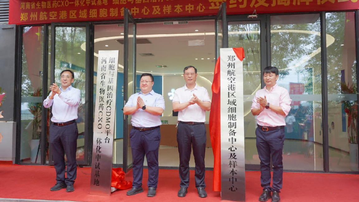 (圖為河南省生物醫藥CXO一體化中試基地細胞與免疫治療CDMO平臺、鄭州航空港區域細胞制備中心及樣本中心揭牌儀式現場)