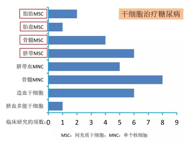 通過動物實(shí)驗(yàn)證明,經(jīng)過體外誘導(dǎo)培養(yǎng),MSC能分化為分泌胰島素的β細(xì)胞樣的細(xì)胞,降低糖尿病老鼠的血糖水平。隨后進(jìn)一步發(fā)現(xiàn),MSC輸注后,改善胰島β細(xì)胞的微環(huán)境,比如抑制局部的免疫反應(yīng)和改善缺血缺氧,能保護(hù)胰島β細(xì)胞免受進(jìn)一步的損傷。因此,在MSC治療糖尿病的臨床研究中,MSC存在兩種狀態(tài):1、經(jīng)過誘導(dǎo)培養(yǎng),能分泌胰島素;2、不經(jīng)過誘導(dǎo)培養(yǎng)。目前的臨床研究中常用糖化血紅蛋白(HbA1c)和胰島素用量這兩個指標(biāo)來判斷MSC治療糖尿病的療效。